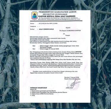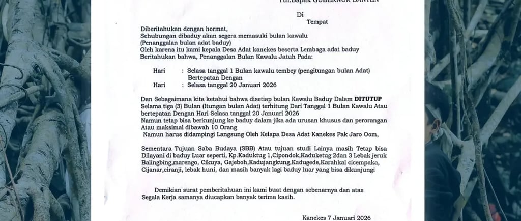 KBRN, Lebak: Masyarakat Adat Baduy mengumumkan pemberitahuan adat terkait pelaksanaan Bulan Kawalu tahun 2026. Pemberitahuan tersebut disampaikan kepada masyarakat luas dan wisatawan sebagai bentuk penghormatan terhadap penanggalan adat Baduy. Dalam pemberitahuan adat tersebut dijelaskan bahwa Bulan Kawalu akan dimulai pada Selasa, 20 Januari 2026, dan berlangsung selama tiga bulan adat.